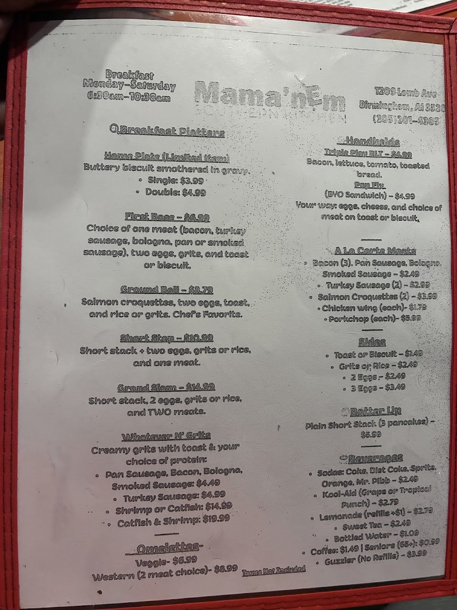 When you step into Mamanem Southern Kitchen, you're in for a true taste of Southern comfort. Located at 1209 Lomb Ave in Birmingham, Alabama, this restaurant serves up a menu packed with all your favorite hearty dishes. From crispy fried chicken to savory gumbo, every item is prepared with love and the freshest ingredients. The atmosphere invites you to sit back, relax, and enjoy the rich flavors that make Southern cuisine so beloved. Whether you're craving classic fried catfish, flavorful barbecue, or a comforting bowl of collard greens, the Mamanem Southern Kitchen Menu offers something for everyone. The portions are generous, the flavors bold, and the dishes come with a side of warmth that only Southern cooking can deliver.